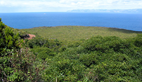 Mistério da PraínhaDie Landschaft östlich der E 2 nennt sich Mistério da Praínha. Dabei handelt es sich um Lavafelder, die aus der Vulkaneruption von 1572 entstanden sind. Heute hat saftiges Gras, windschiefe Wacholderbäume, Zedern, Lorbeer, Hortensien und Heidekraut die Lava überdeckt. Wer hier zu Fuß unterwegs ist, sollte auf den Wegen bleiben, denn nicht selten decken dicke Moosteppiche tiefe Spalten im Lavagestein zu oder lassen schroffe Felsbrocken als leichte Unebenheiten erscheinen.Lagoa do Caiado, Lagoa Seca